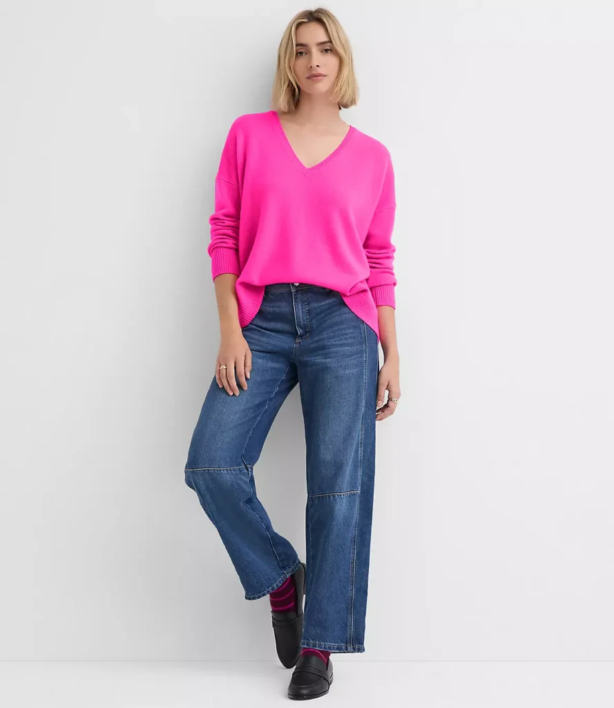 Designed with petite proportions in mind, this relaxed V-neck cashmere sweater offers an easy silhouette that feels comfortable without overwhelming a smaller frame.
